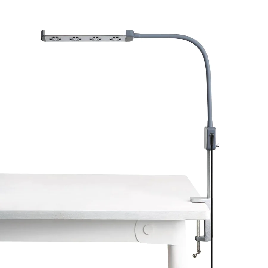 Dieser Trockner und Abluftventilator ist an einem flexiblen Arm befestigt und lässt sich an einem Tisch oder einer Liege festklemmen. Seine drei Geschwindigkeitsstufen, seine Geräuschlosigkeit und seine Flexibilität machen die Arbeit mit den Kunden zu einem angenehmen Erlebnis.