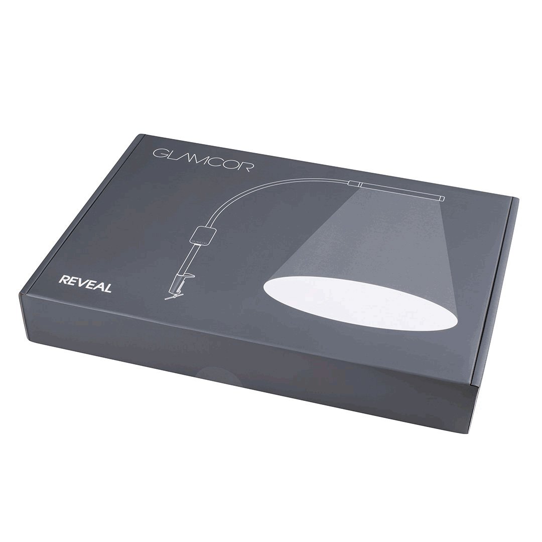 Enthülle deine besten Arbeiten mit der Glamcor REVEAL Pro Kit- einer tragbaren LED-Lampe mit Tischklemme.