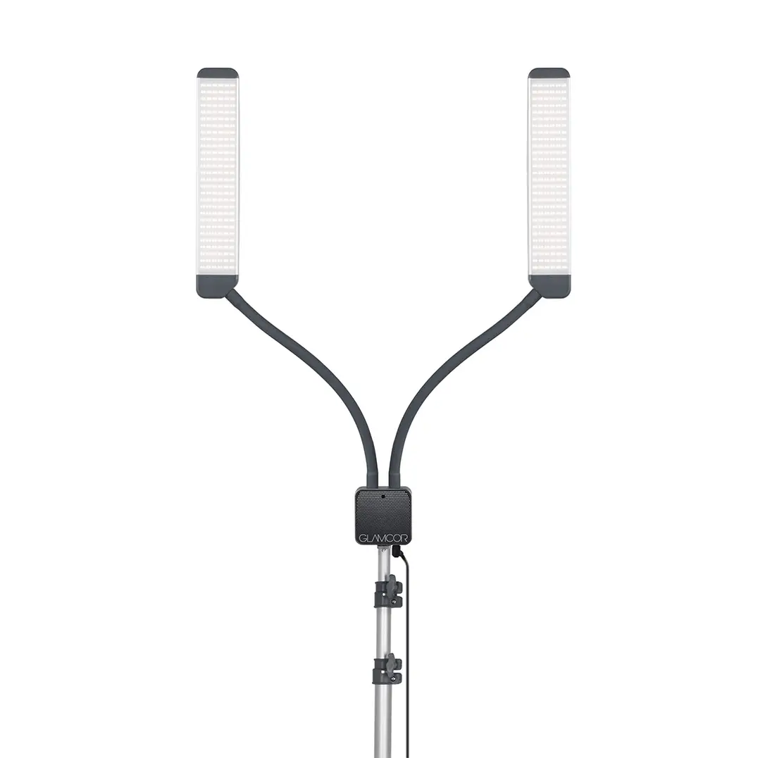 Glamcor Ultra X Pro Kit mit zwei flexiblen Armen und hellen LED-Leuchten erfüllt all deine vielfältigen Beleuchtungsanforderungen. Die Fernbedienung steuert warme und kühle Töne, um 256 Schattierungen von hellweißem LED-Licht und fünf Dimmstufen zu erzeugen. Mit den drei Speichereinstellungen kannst Du schnell zwischen Deinen bevorzugten Lichttönen und der Helligkeit wechseln.